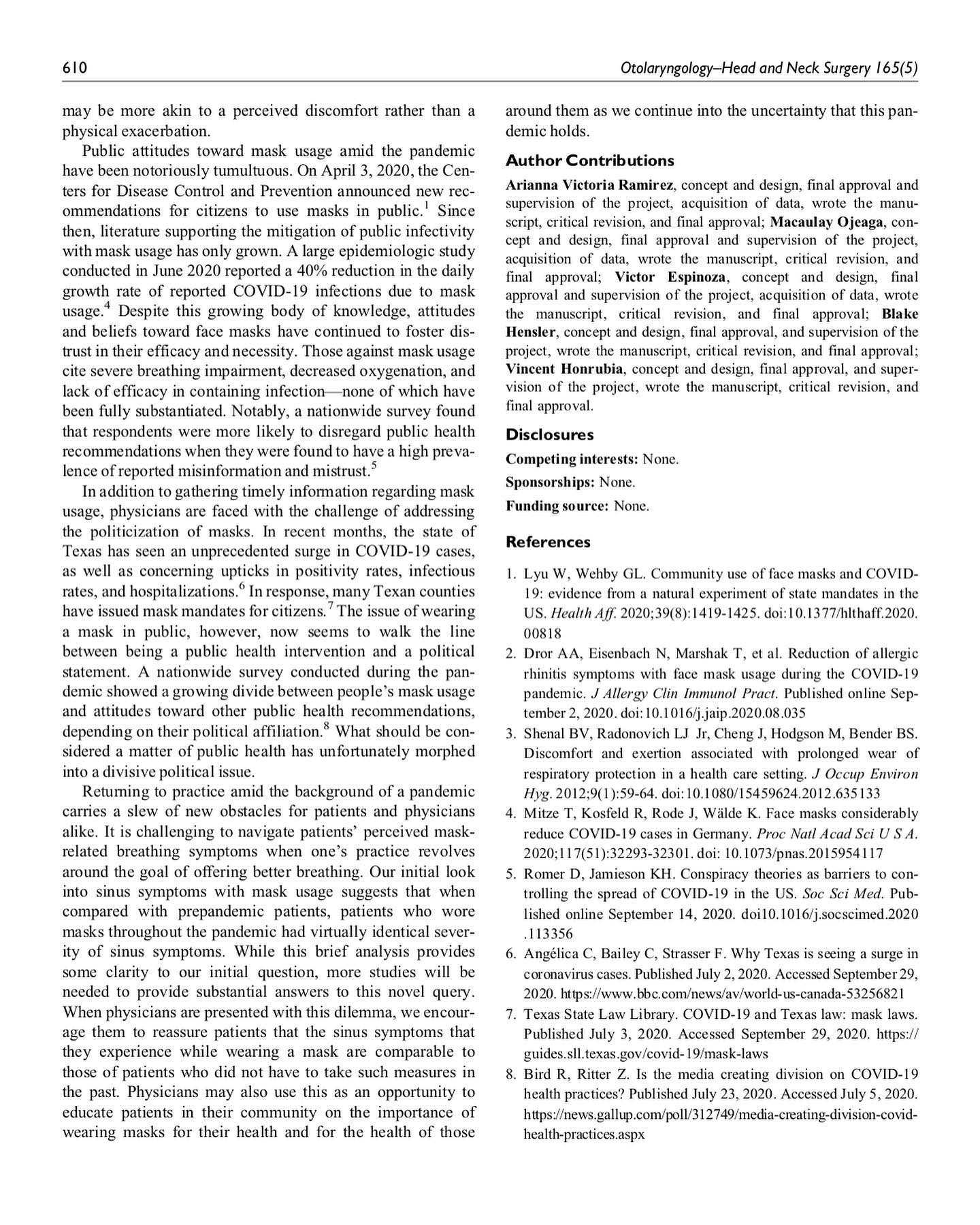 Dr. Vincent F. Honrubia, MD, FACS and Blake Hensler, MPAS, PA-C are two of the authors of a new paper published in the latest issue of the OTO Journal: “Does Mask Usage Worsen Symptoms in Patients With Rhinosinusitis Balloon Sinuplasty Amid the COVID-19 Pandemic?”