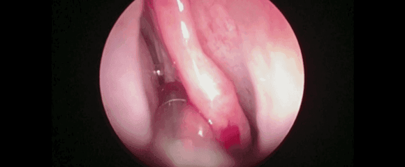This is Dr. Vincent Honrubia from the South Texas Sinus Institute showing this video about freezing the Vidian nerve. Here we are showing a view of the middle turbinate on the left side as well as the ethmoid bulla area preparing for the freeze gun, or cryotherapy instrument, to be inserted. It is very important that we have good visualization and medialization of the middle turbinate.
